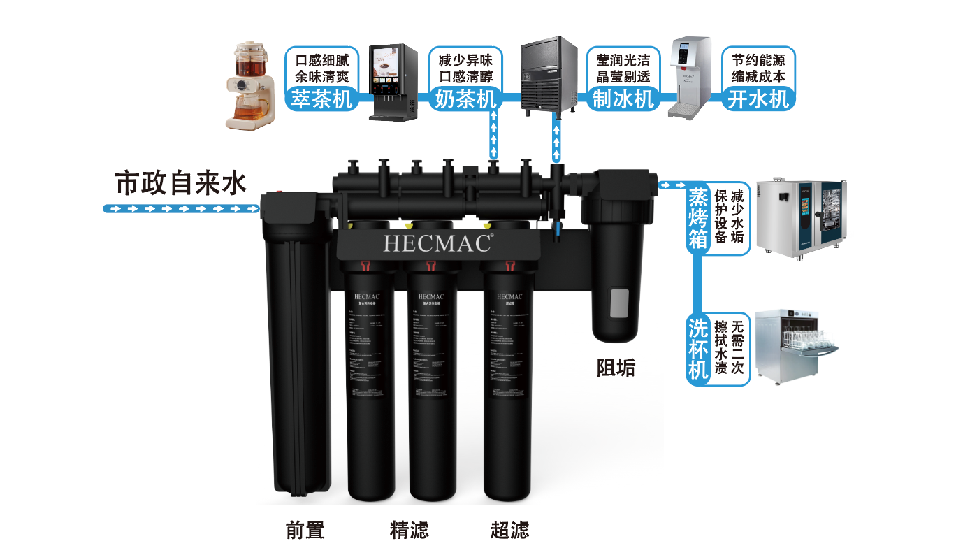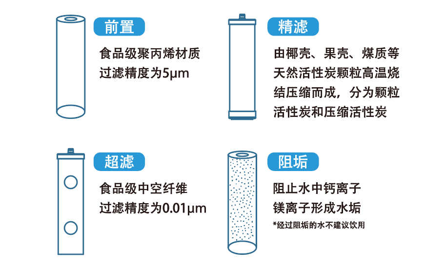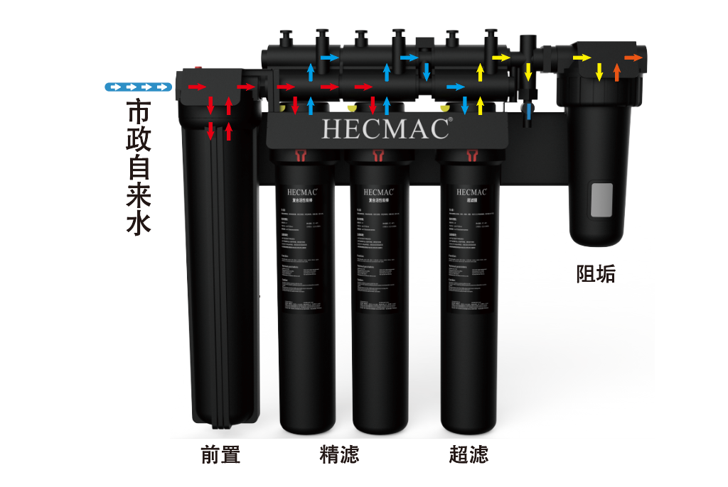 大通量、长寿命、一机多用 前置、精滤、超滤、阻垢模组可任意组合净水工艺 满足多种使用需求